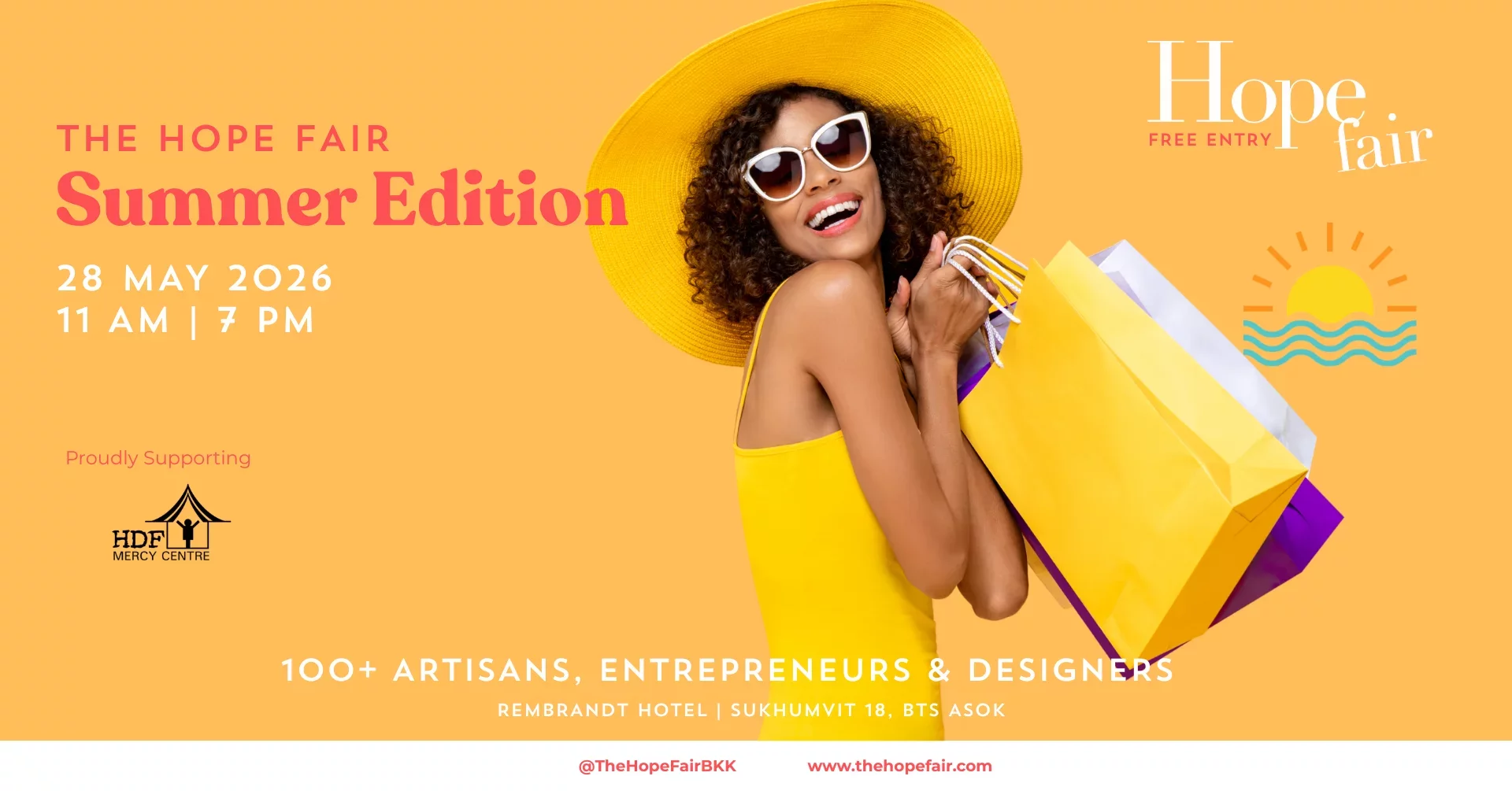 Weβre excited to announce the next edition of The Hope Fair: Summer Edition, happening on May 28th, 2026, from 11 AM to 7 PM, at the Rembrandt Hotel in Bangkok π